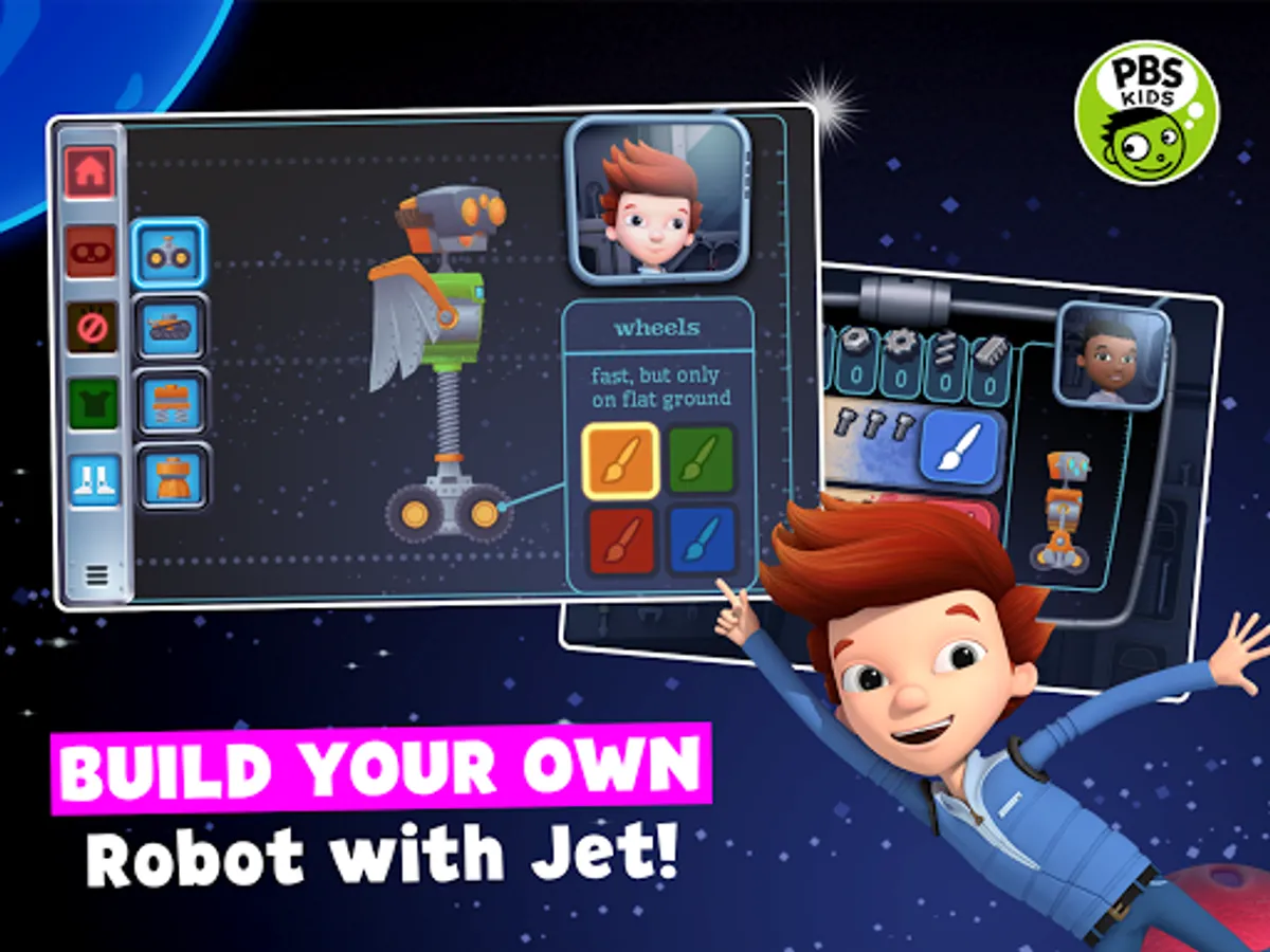 Kids can build their own robot with Jet and his friends! Explore the solar system with “Ready, Jet, Go!” and enjoy learning games that teach science, engineering and problem-solving skills.