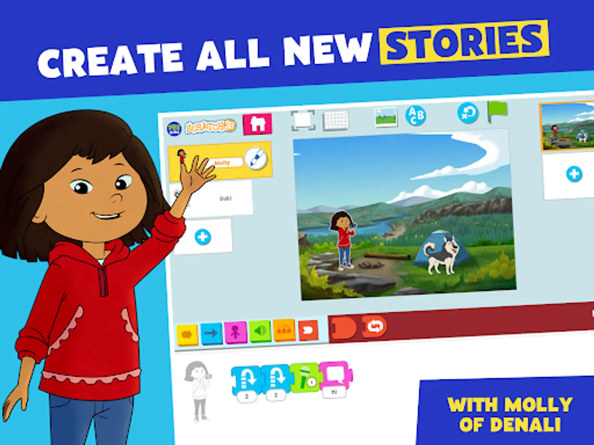 - Play coding games and create interactive stories and projects based on hit PBS KIDS shows like: