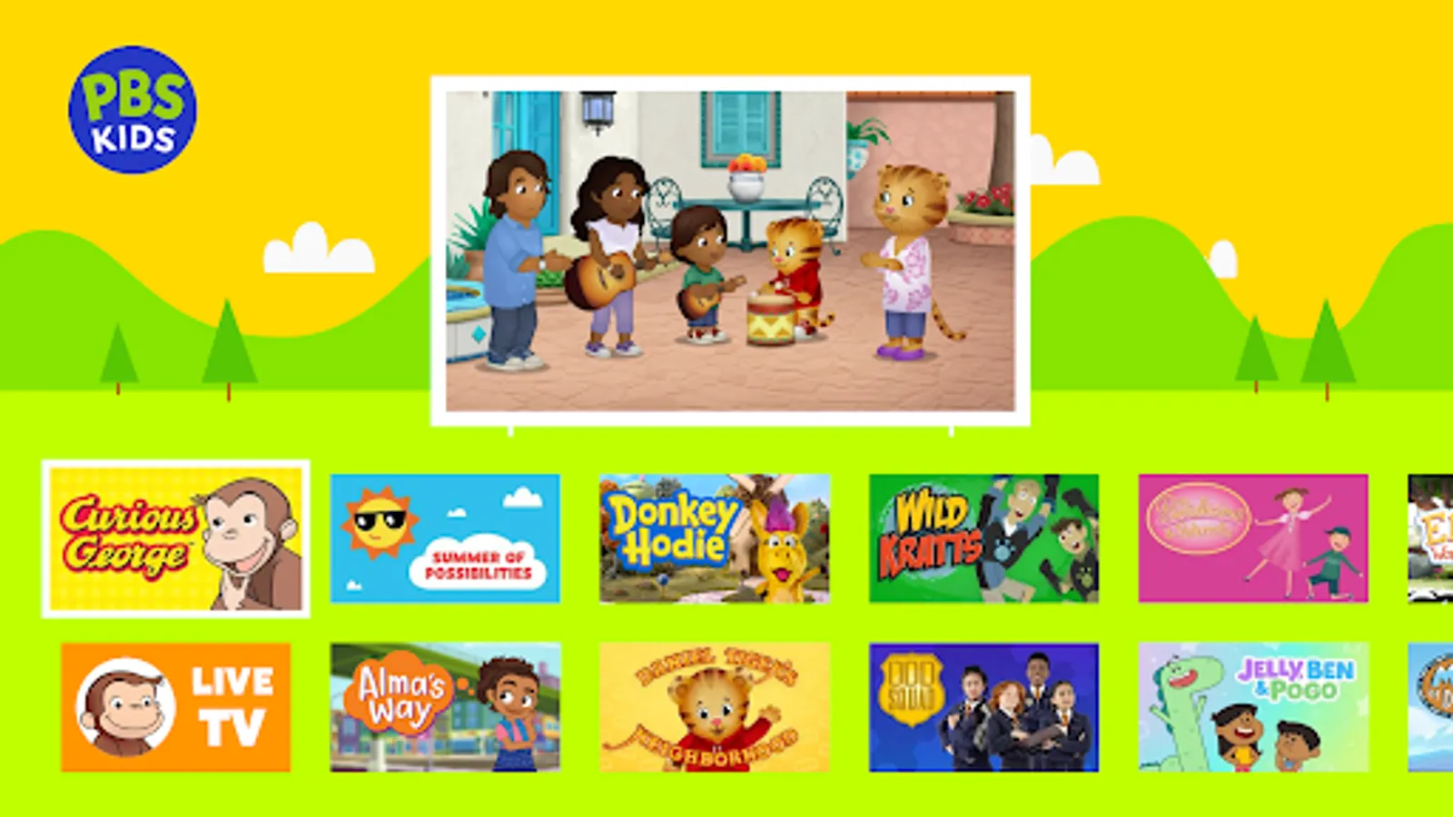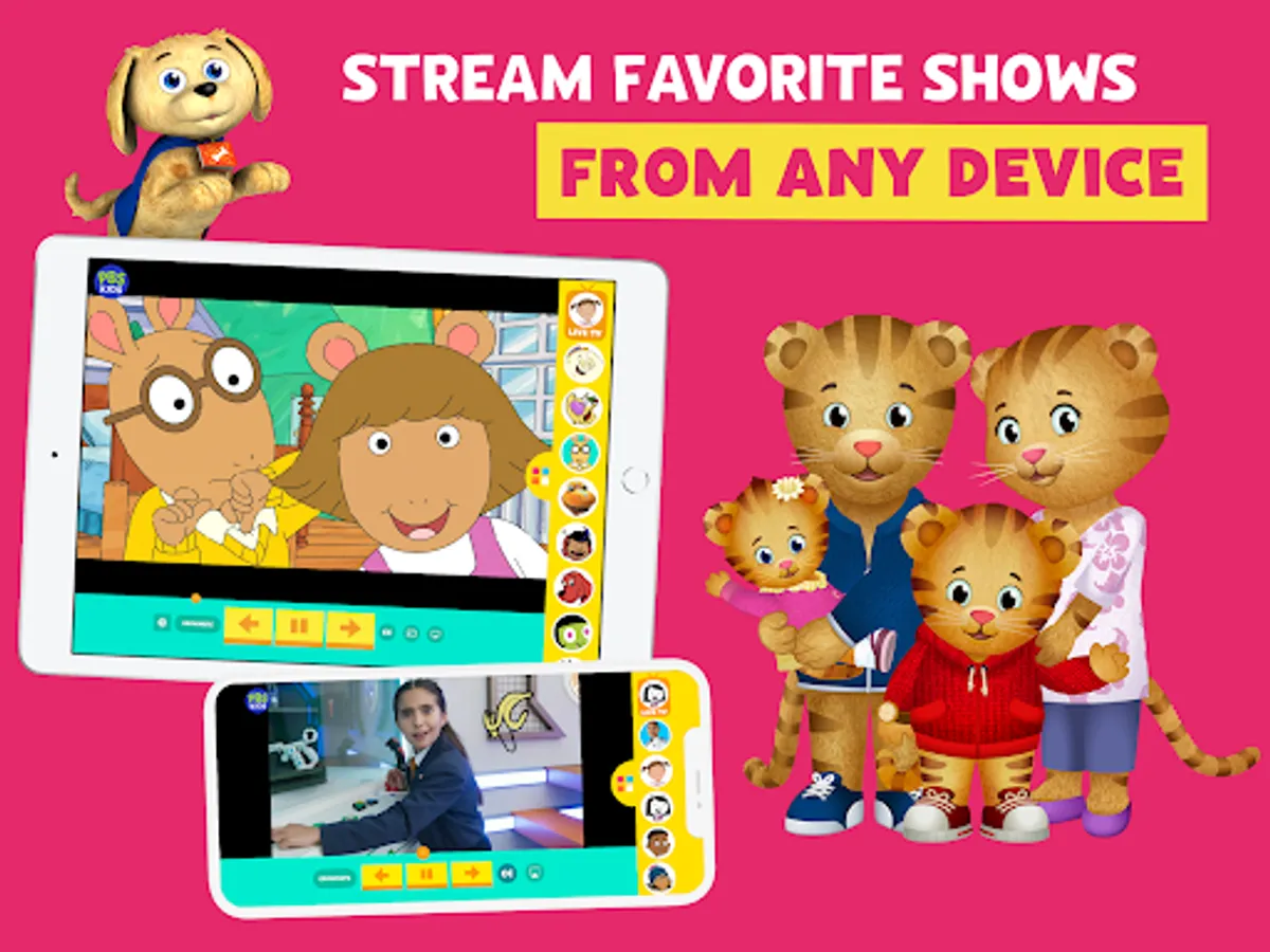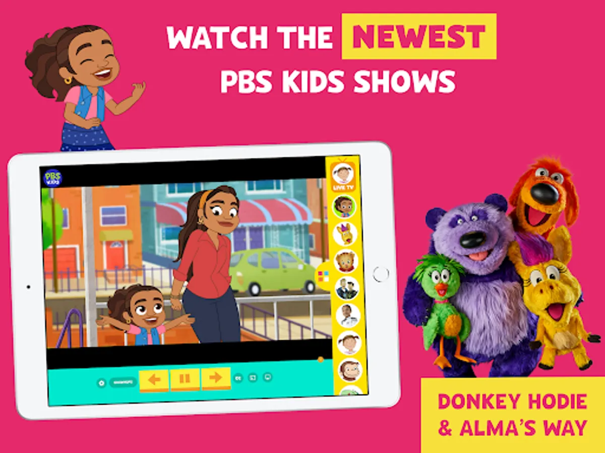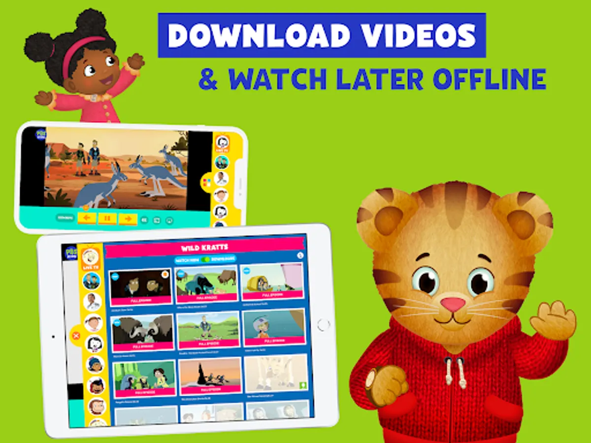 Watch live TV, stream, and download episodes with PBS KIDS Video! Safely stream videos from shows like Daniel Tiger’s Neighborhood, Wild Kratts, Sesame Street, Curious George, Odd Squad, Alma’s Way, and more!