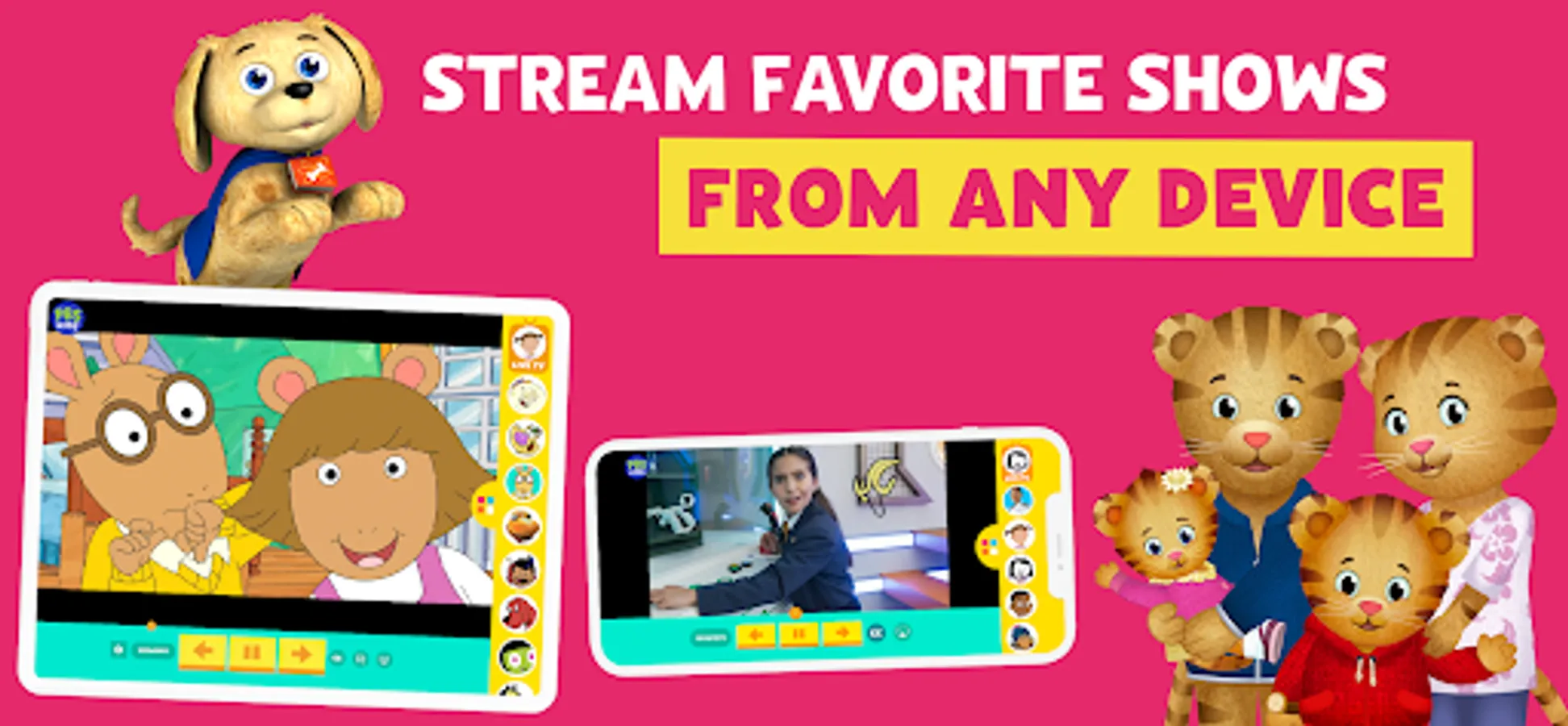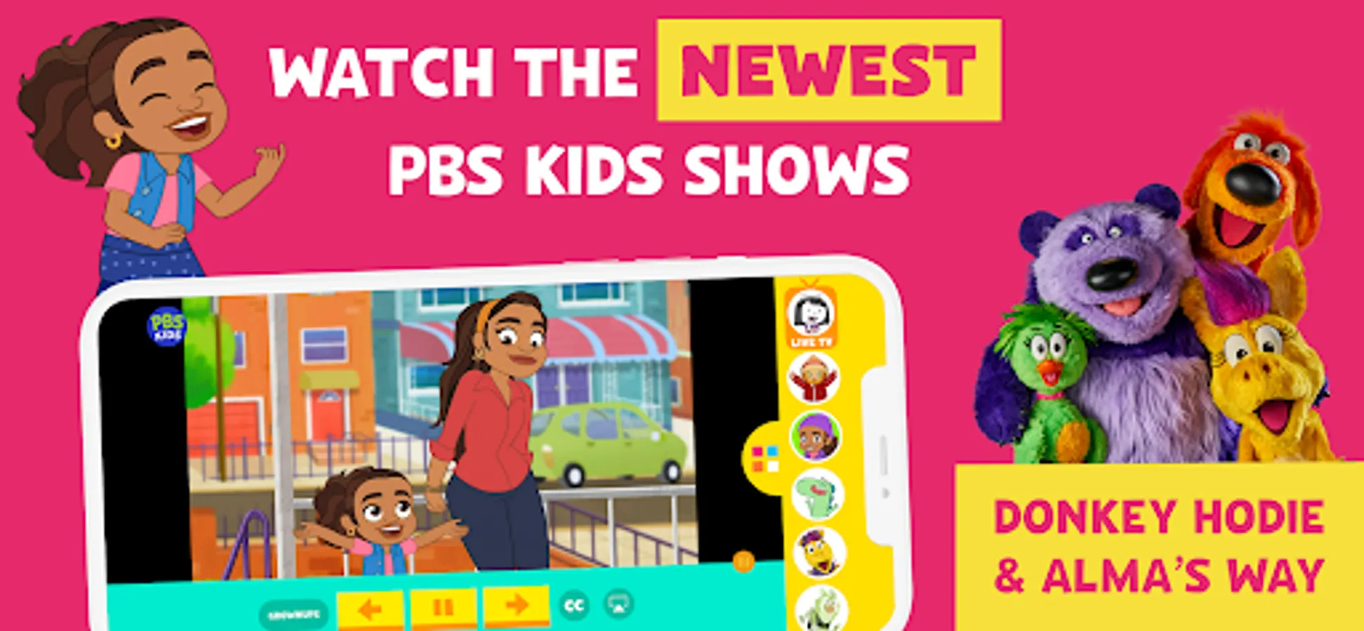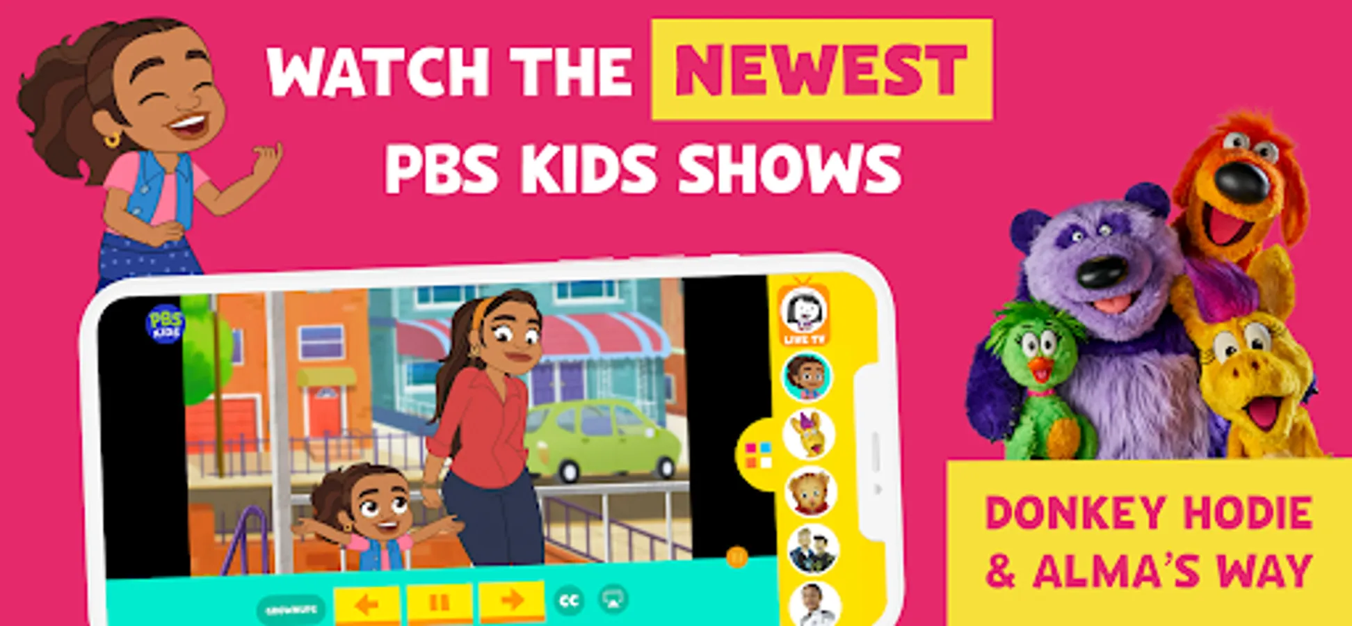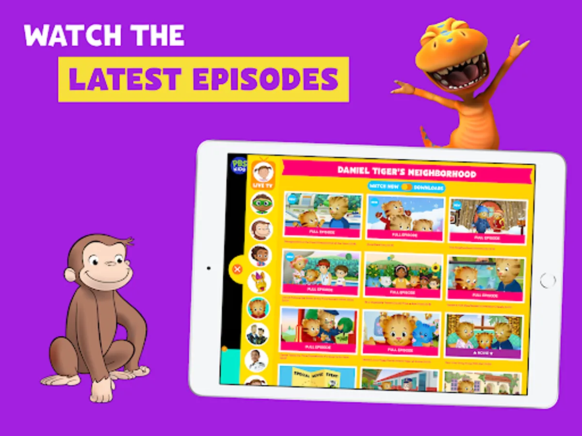 Watch live TV, stream, and download episodes with PBS KIDS Video! Safely stream videos from shows like Daniel Tiger’s Neighborhood, Wild Kratts, Sesame Street, Curious George, Odd Squad, Alma’s Way, and more!