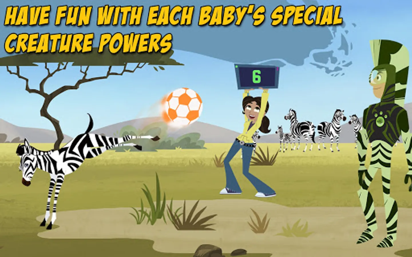 Join Martin, Chris, and the Wild Kratts team on an African Savannah creature sitting adventure. These baby animals need a lot of attention and care, and with the Wild Kratts Baby Buddies app, you are in charge of feeding, washing, protecting and playing with each one. The Wild Kratts team will be there with some facts and tips to help you learn about the baby animals amazing creature powers along the way.