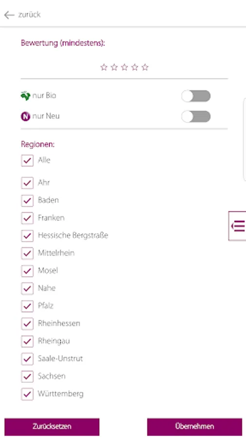 The annual survey of German wines is also available as an app. The basic version offers five selected wineries and their description and wine reviews. The full information of the new vintage and all wine reviews can be purchased with costs as InApp purchase.