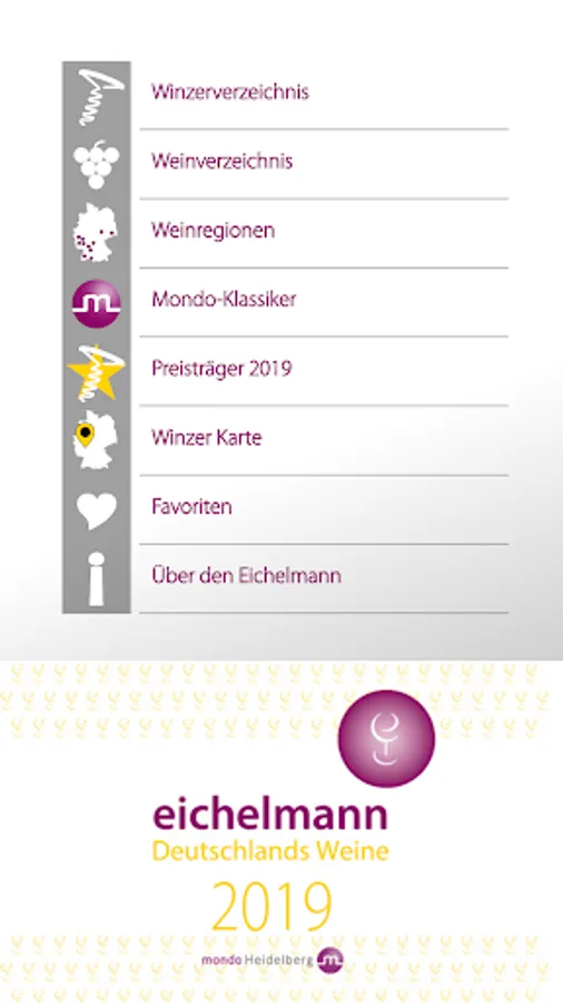 "Reich-Ranicki for wineries and wines" judged the Hessian Broadcasting, "the most comprehensive and critical guide to Germany's wines" the ZEIT on previous issues. In addition to the book edition (bound, 35 €), the Eichelmann 2019 is also available as an app, which costs 29.99 € in the full version.