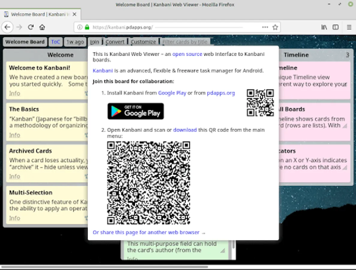 * Share boards by link or QR code for viewing in any web browser on any platform. Print boards to PDF, filter, import or export to Excel, Trello, and more.