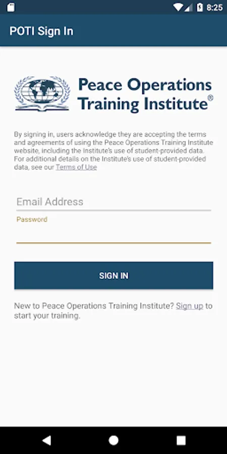The Peace Operations Training Institute app is a companion to the Institute’s online learning platform. Students may use the application to access their classroom on mobile devices, take exams, view course contents, manage their profiles, and view their transcripts. Students should register/create a profile at https://www.peaceopstraining.org/users/account-registration/?next=/users/ before logging onto the app.