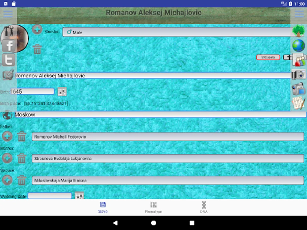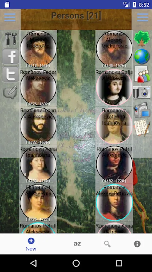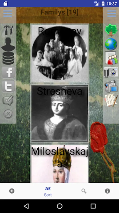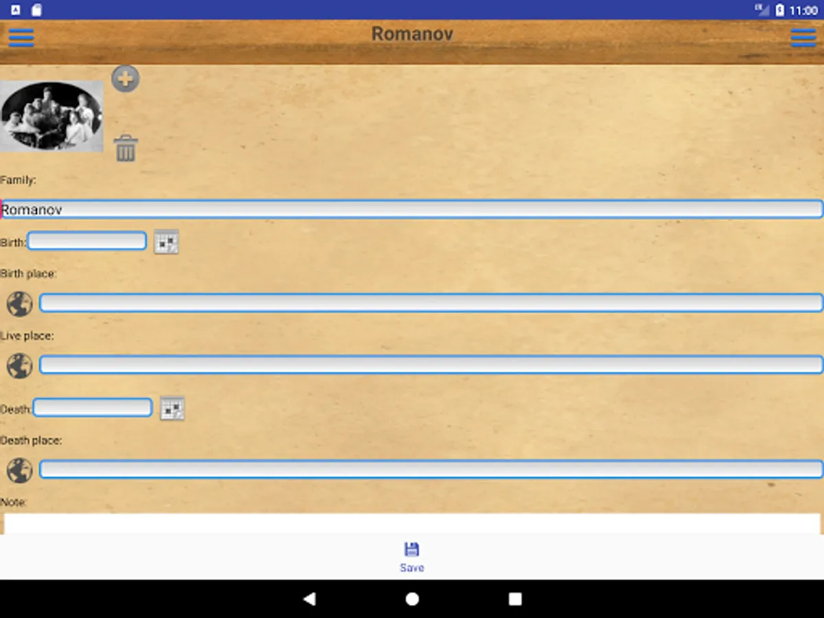 People in the program are grouped by families. The first screen is a list of families. The second screen stores data about persons belonging to the family. This allowed to create order in the lists of families and their personalities.