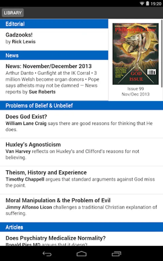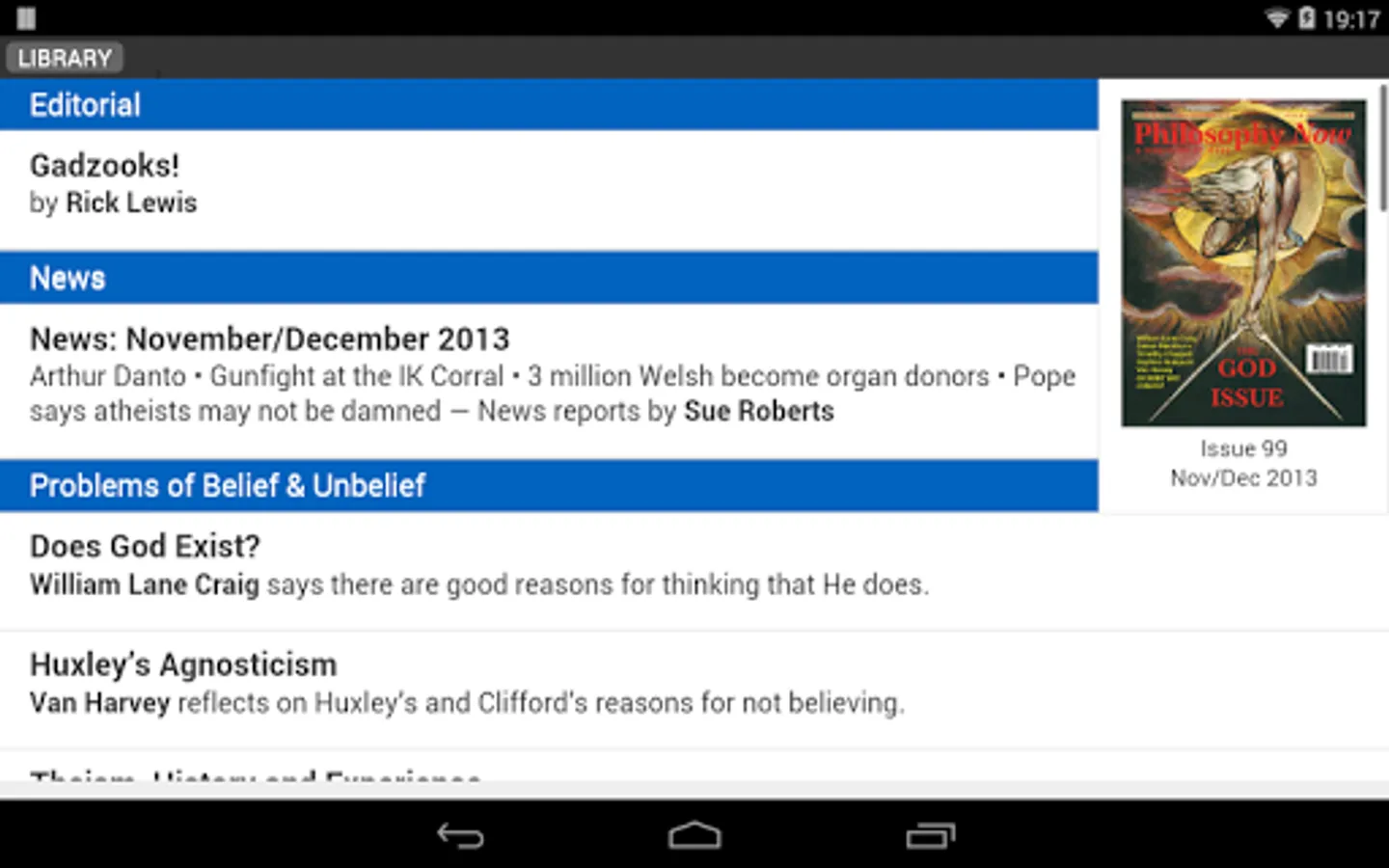 Since its small-scale launch in Britain in 1991, Philosophy Now has grown to become the most widely-read philosophy periodical in the English language. Philosophy Now is independent of all groups and has no intentional editorial bias except for a passionate conviction that philosophy is a Good Thing.