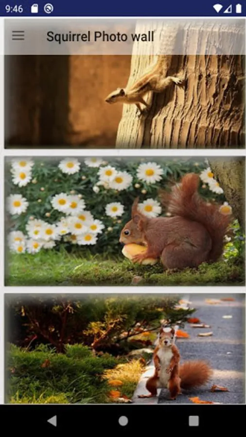 Squirrel animal free wallpaper are the best HD collection provided to u free of cost with advertisement. Near the app name the menu icon lead you to navigation bar. where you can see new wallpapers, favourite wallpapers, home wallpapers. On menu there is settings which lead you to clear cache and a support us link. please remarks to support the developer. click on the thumb icon you will get the large image. On the toolbar there is favourite icon. With the favourite icon you can add the wallpaper to the favourite list. and when you want to remove the wallpaper from the favourite list just only click on favourite icon again. when the icon is red this indicate that the wallpaper is present in the favourite list. If you like to change the background of your smart phone then this is the best wallpaper for you. on the toolbar there is three dot menu icon through which you can perform different functions. the features are given below.