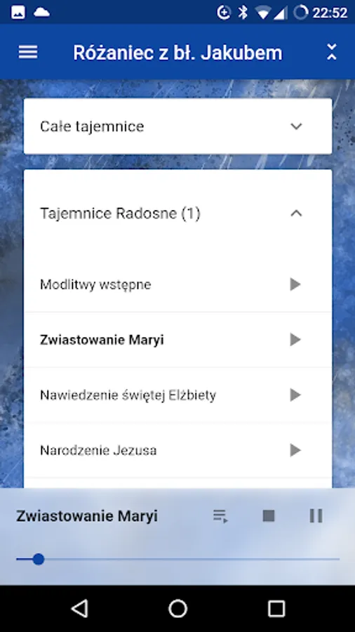 - After restarting the application, playback resumes from the place where it was interrupted.