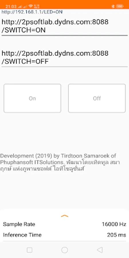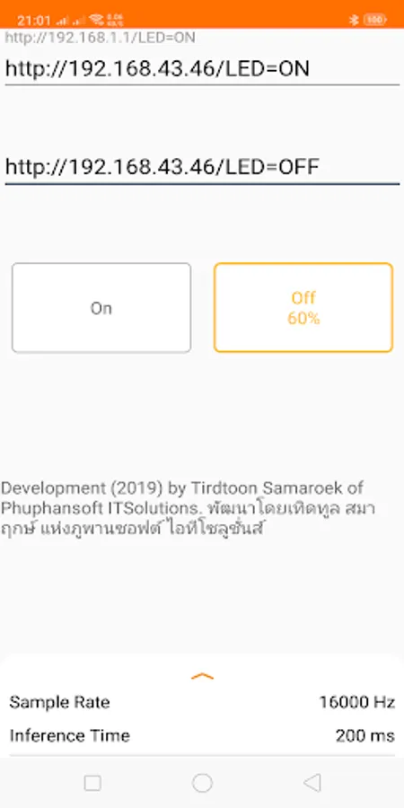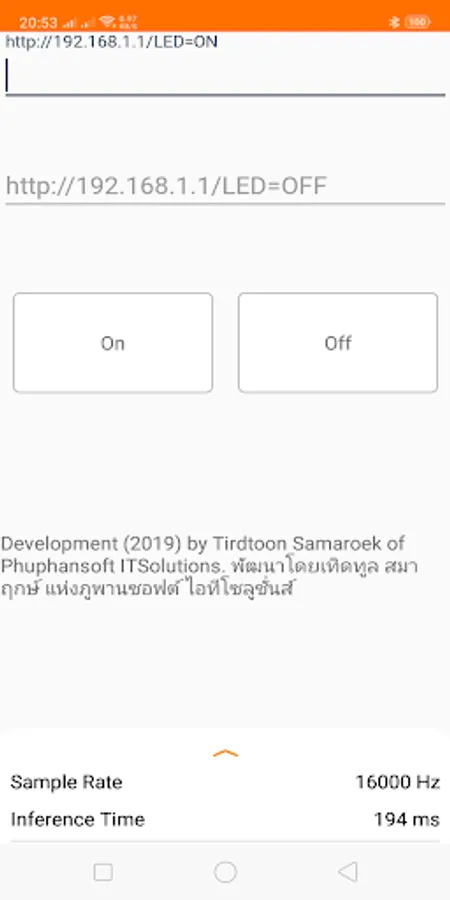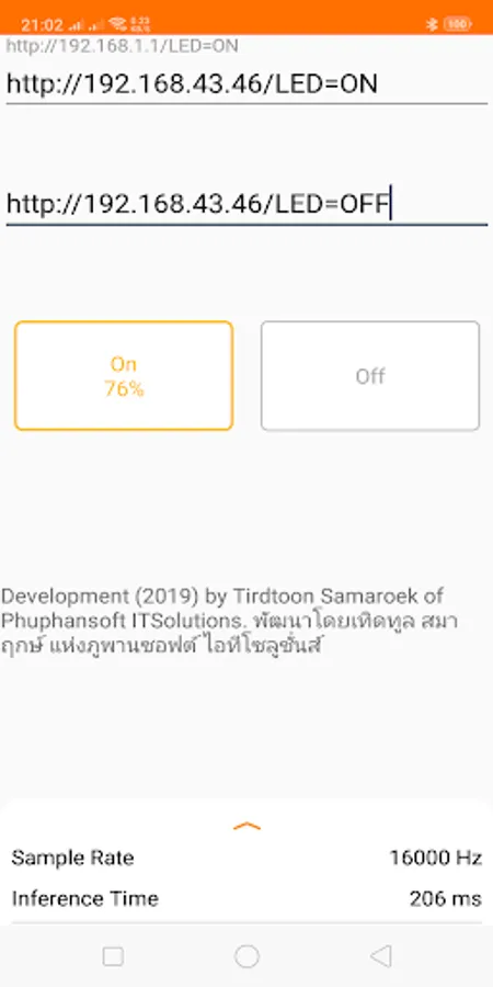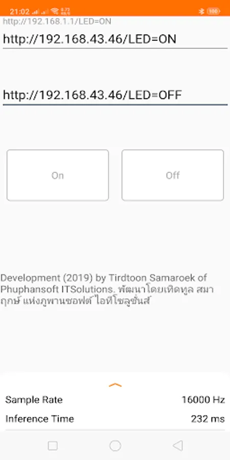 3. Put IoT 's URL in second input text for "Off" command fro example "http://192.168.2.2/LED=Off"