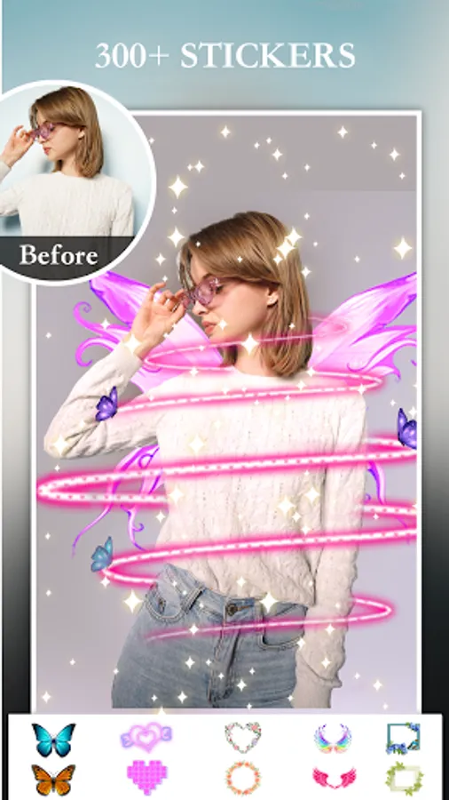 📌5. 500+ stickers and text fonts with snap effect which can lead a festive touch to your photos