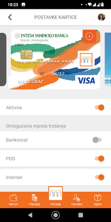 • Privremena blokada/deblokada debitnih kartica i to po različitim kanalima: internet, POS, bankomat, u zemlji ili van zemlje