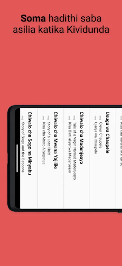 *Soma hadithi saba asilia katika Kividunda, Kiwahili, au Kingereza