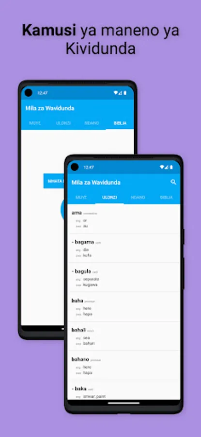This app has been produced by the Vidunda people and Pioneer Bible Translators. Special thanks to Damas Rulenga for his years of hard work and dedication to his people.