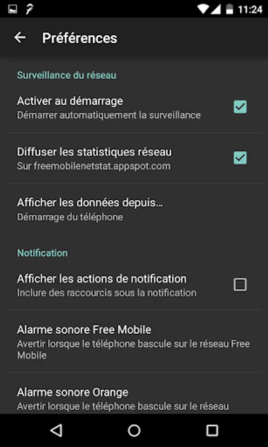 The collected data is consolidated and disseminated on the site http://freemobilenetstat.appspot.com, where you can see the overall utilization of each network statistics. The data released are anonymous, and functionality is optional.