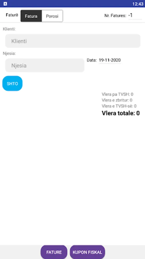 1. Fatura - Shitje me faturë & Kupon Fiskal