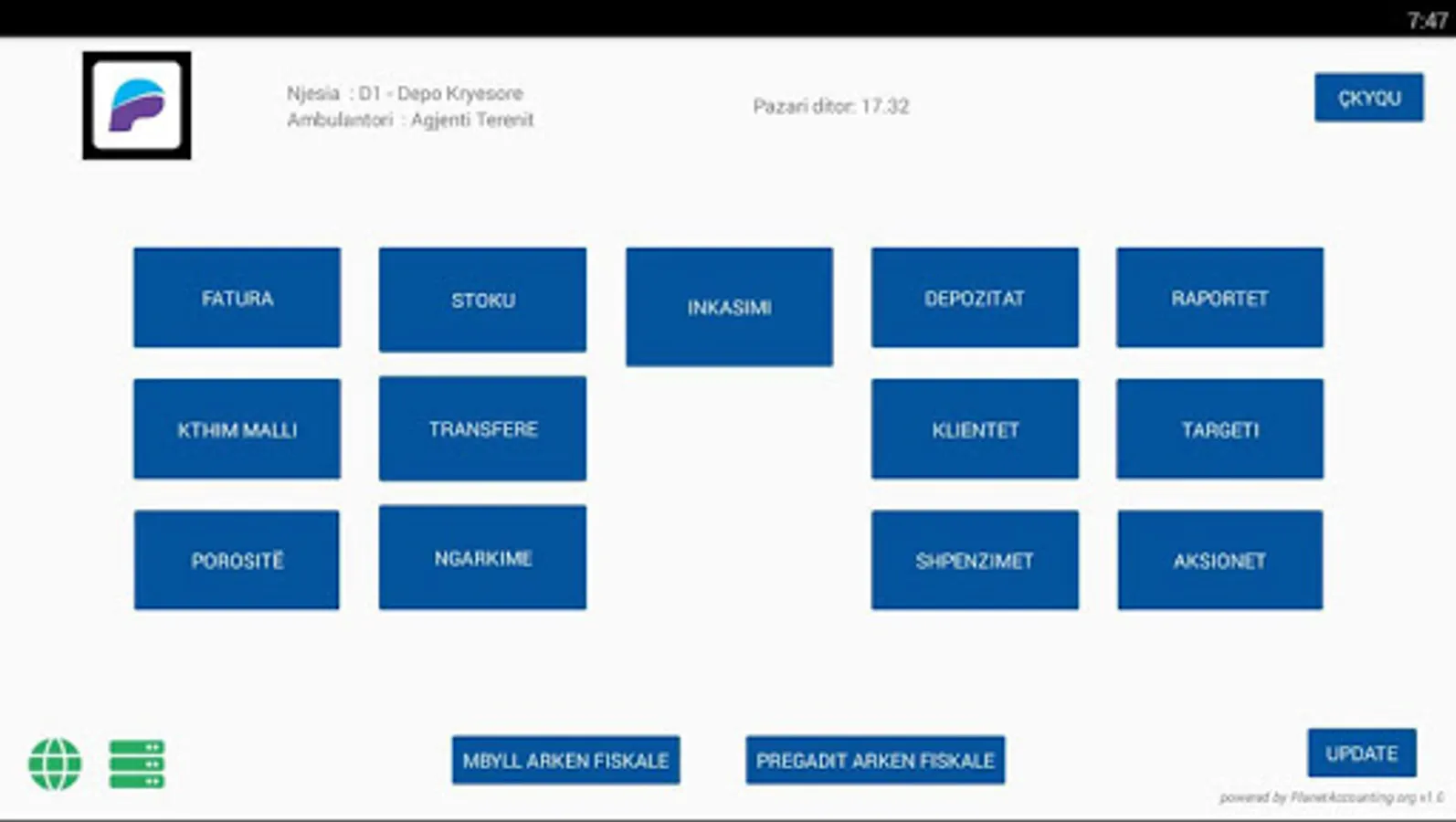 Sale Agent - Planet Accounting është aplikacion që i kushtohet agjentëve të shitjes duke i përhrahur këto module :