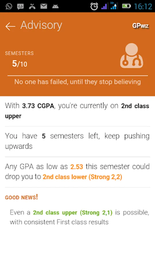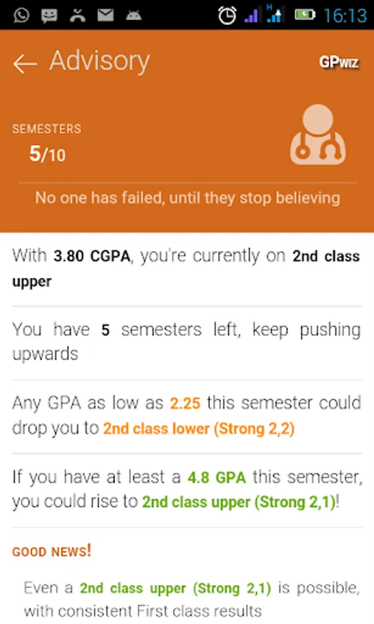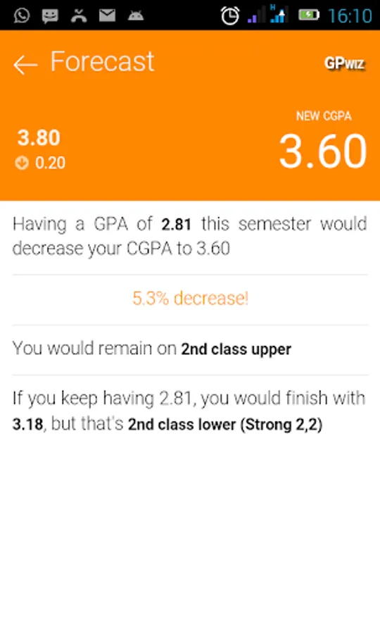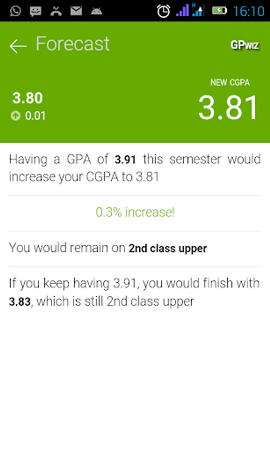 With GPWiz, you can predict what you would graduate with or what your CGPA would become at the end of the semester, and ultimately improve your performance.