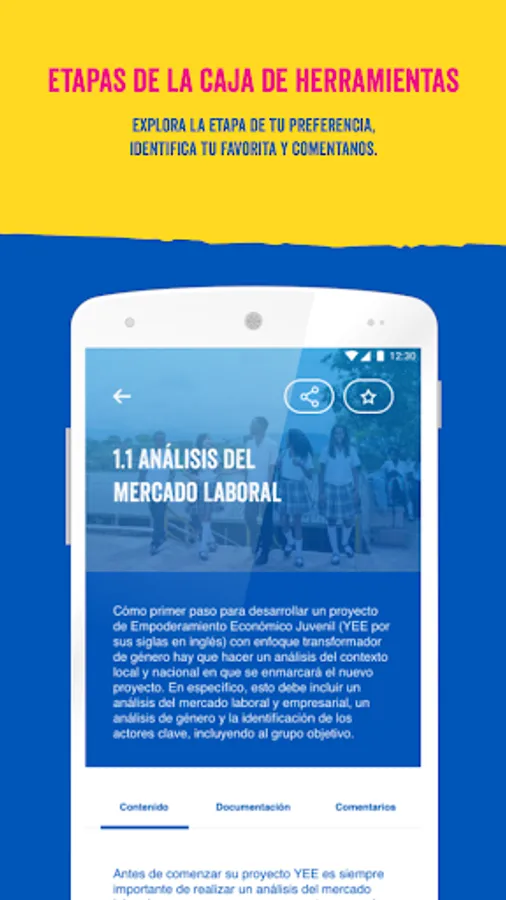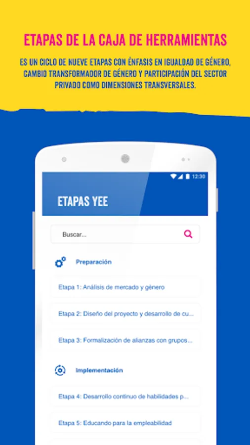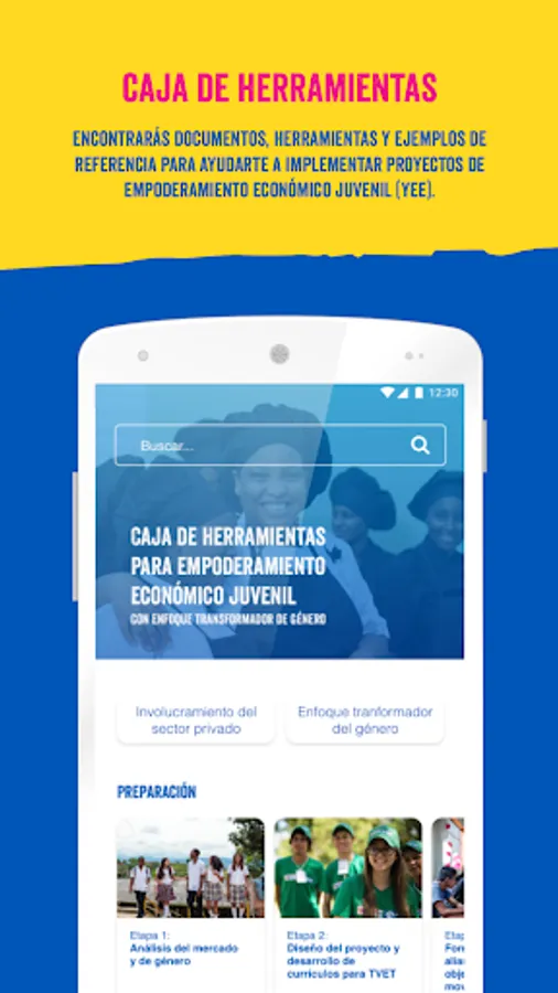 The "Plan for Youth" application is a Toolbox that helps you design and implement Youth Economic Empowerment Projects (YEE) with a Gender Transformation Approach. In each of the stages of this toolkit you will find documents, tools and reference examples with information on how to implement a YEE project with gender equality and the importance of private sector participation as part of the entire cycle.