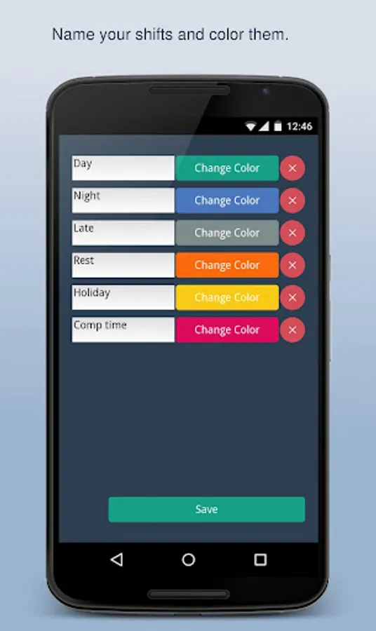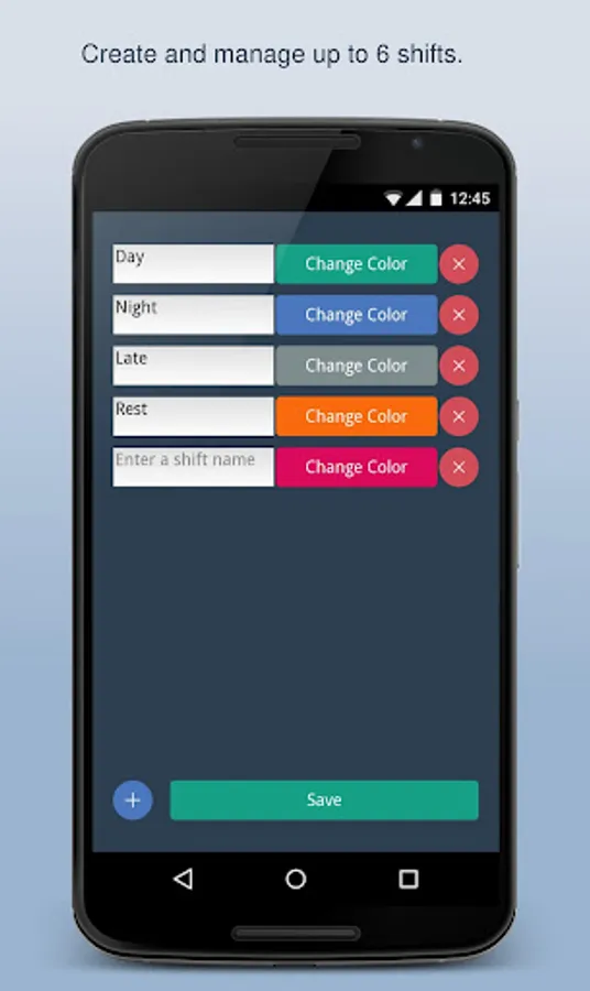 With PlanMyShift you are able to create up to 6 shifts and give them a color you like.