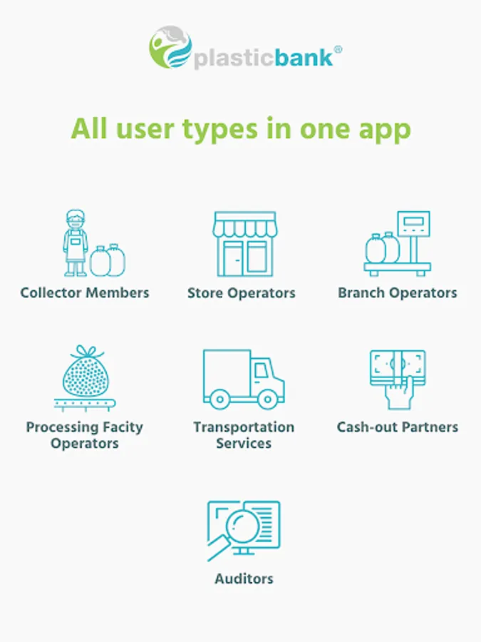 The Plastic Bank APP empowers you to earn and exchange recycling rewards. All in one free APP, you can operate a professional recycling business as a collector, recycling shop owner, or processor. You can even operate ANY kind of store you want.