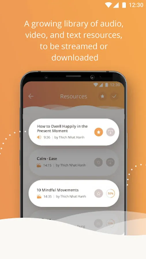 The Plum Village app is split into four easy-to-use categories – meditations, talks, resources, and bells of mindfulness: