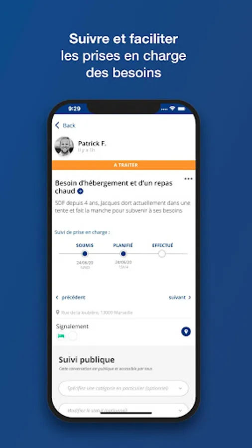 The + Avenir Connect application facilitates the identification, management and follow-up of social emergencies by support organizations and allows them to benefit from the support of the community.