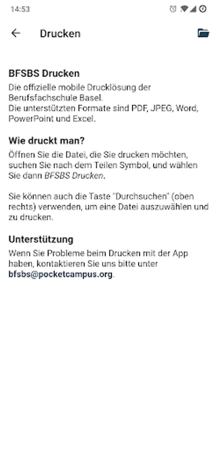 Print documents at BFS Basel (BFSBS) from your mobile device, find instructions for e-mail, teams, and more.