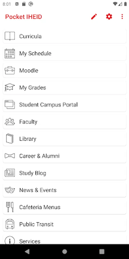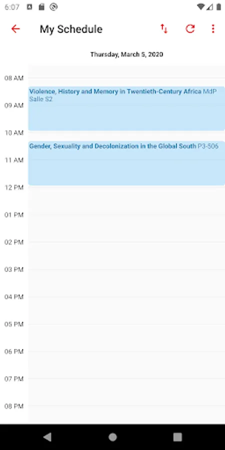 Your personal course schedule! Tap on classes to see the professor and location. Tap on the share button to sync your schedule with your device's calendar.