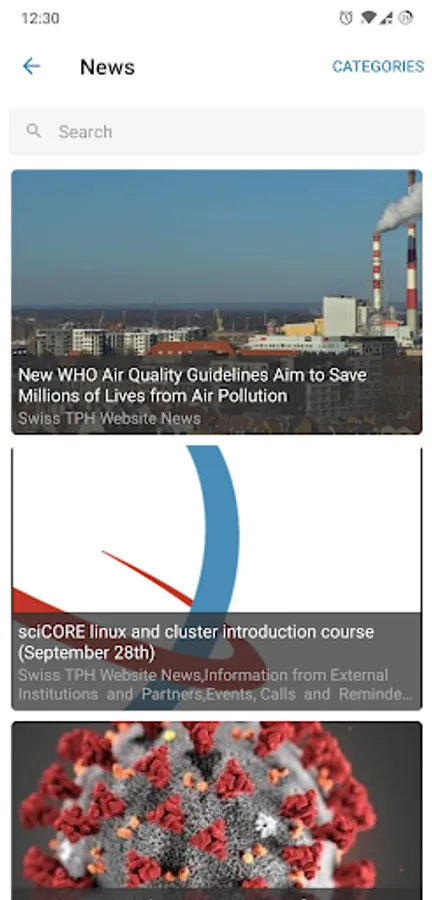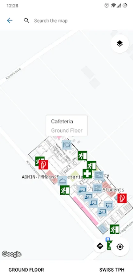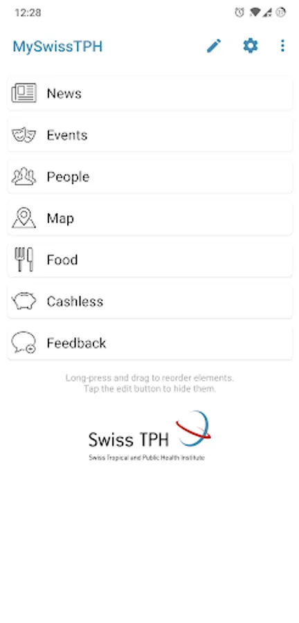 Check the latest news, upcoming courses and events or the menu of the cafeteria. Charge your bagde with the cashless function and search through the directory of Swiss TPH people. Thanks to the interactive floor maps, you can easily locate the different team spaces, the next printer, spaces for project work, and more.