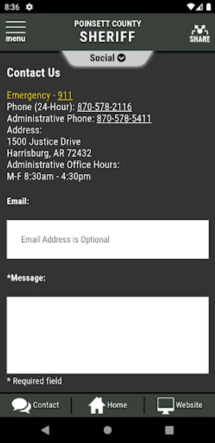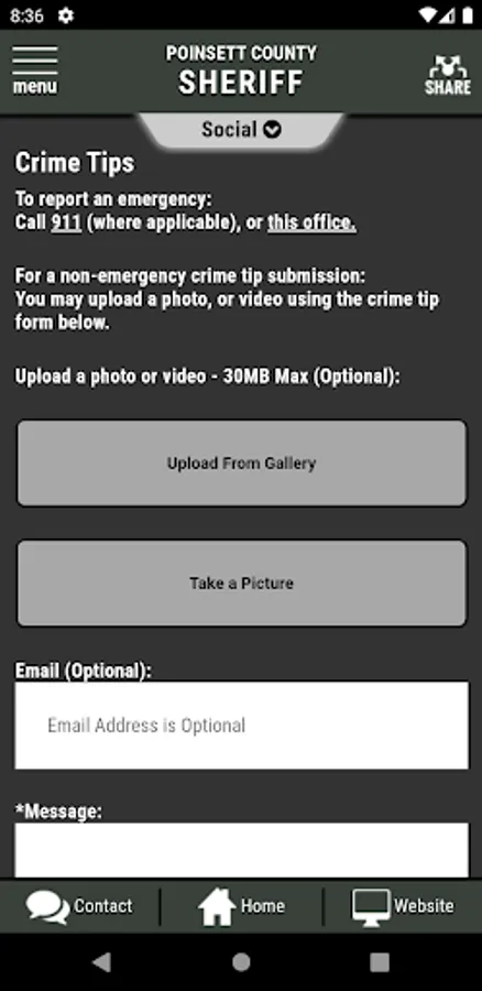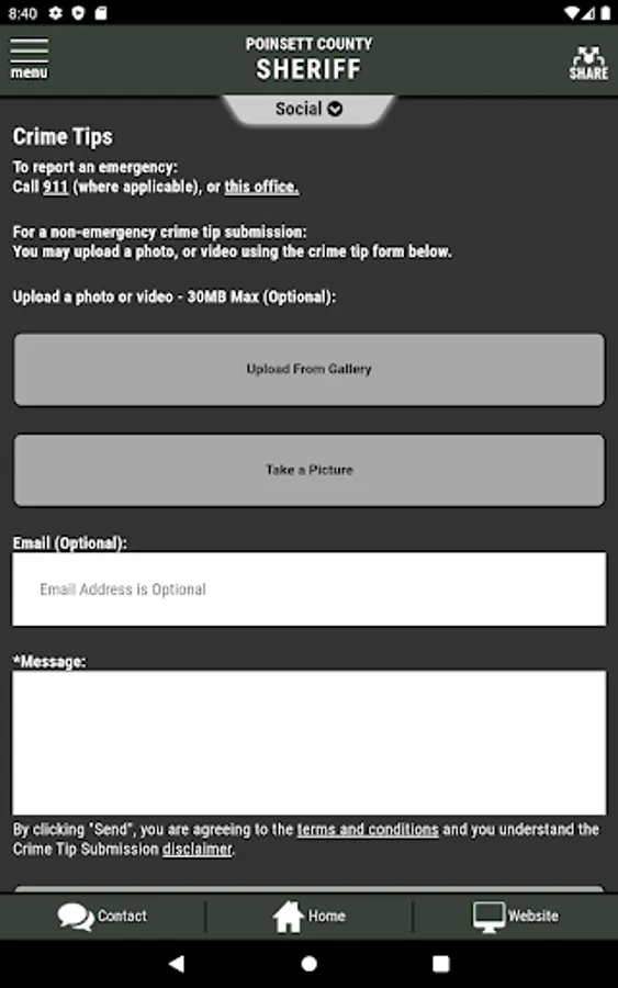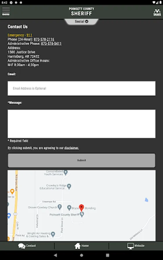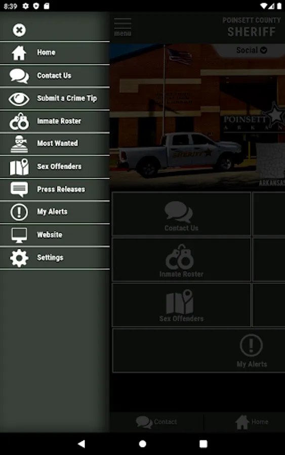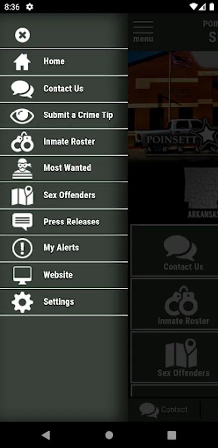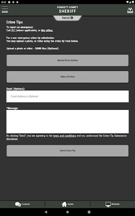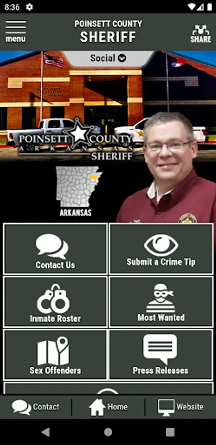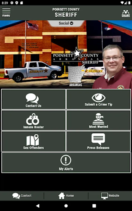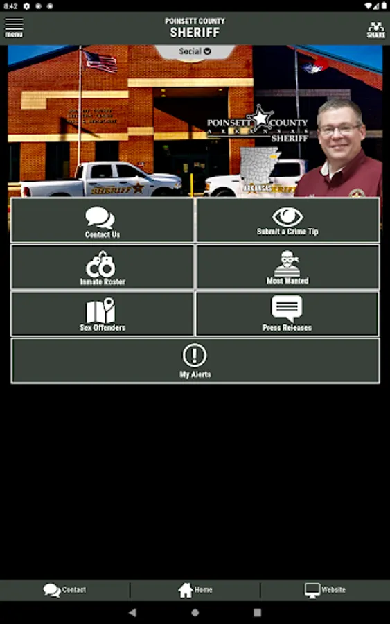 The app has public information for inmates, press releases, most wanted and sex offenders. Crime tips and contact us messages can be sent to the Sheriff's Office.