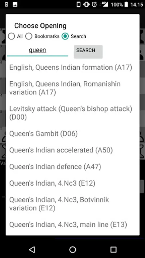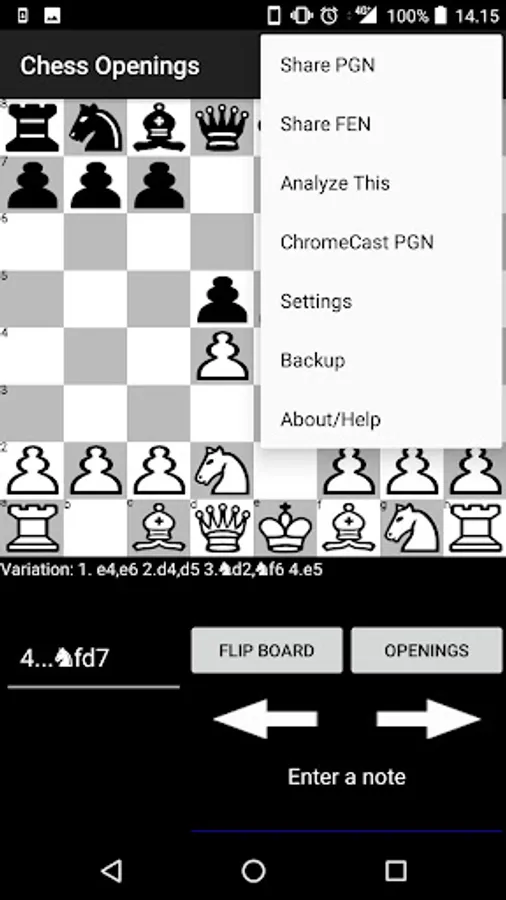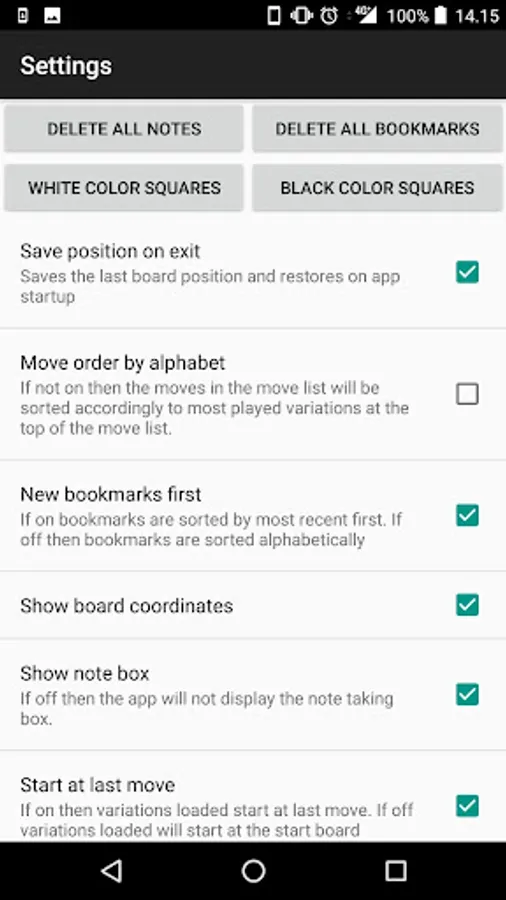 The opening book can be expanded by adding your own moves as well to the database and as the ONLY chess opening app on Google Play you can backup or transfer your custom moves, notes and bookmarks to other devices (built-in cloud support in the app).