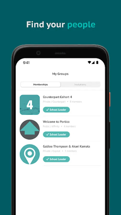 The Portico Community app is built with you in mind, making it easy for school leaders to engage with the people and resources available to members of the Portico Community. Message other community members and participate in discussions directly from the app, or find resources in Toolkit that you can use right away. The Portico Community app supports school leader and coach communication during Copilot and Counterpart meetings, and can help people connect just in time between meetings.