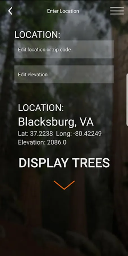Users can narrow the species list for any location in North America using the phone's GPS, network signal or any entered address or zip code. Basically the application can become “Woody Plants of Where You Are Standing”. For example, it can become the “Woody Plants of Southwestern Oregon” , the “Woody Plants of Central Park” or the or “The Woody Plants of 37.108 lat., -80.452 long., elevation 2118”.