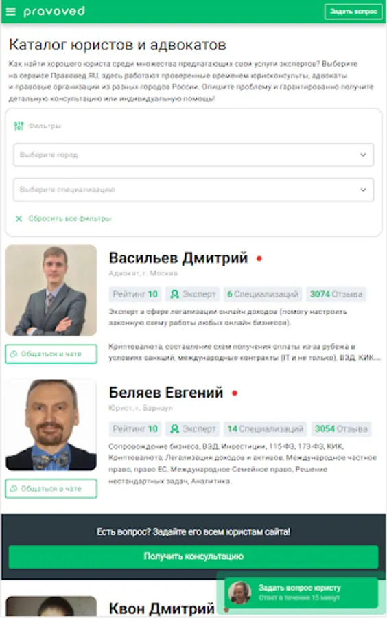 Pravoved.ru brings together the best specialists so that high-quality legal advice is available to you at any time.