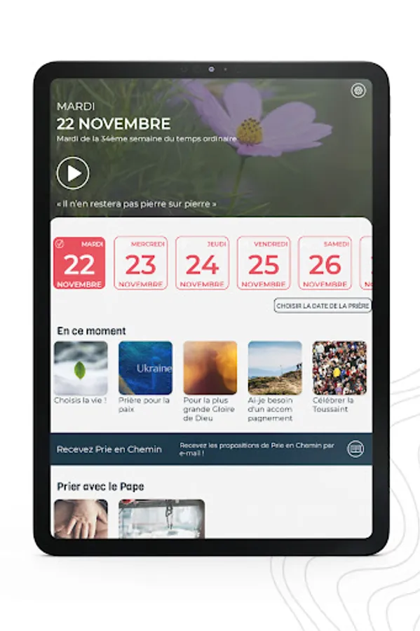 The Pray on the Way application not only allows you to pray, but also offers you to take notes in a virtual notebook, and to save the prayers that have touched you.