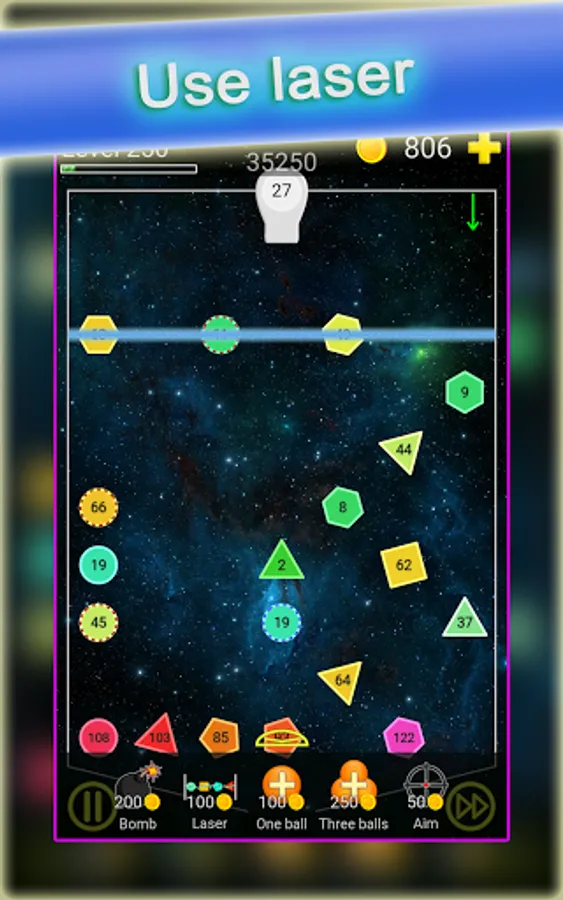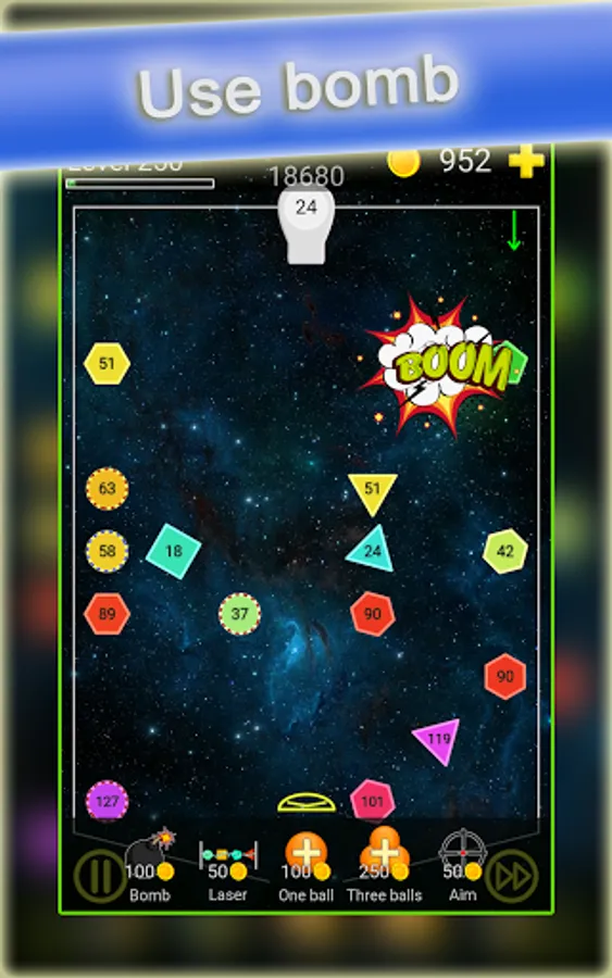 The level of bricks will be increased after each round you throw the balls. Very easy to play but very hard to reach high scores. Don't forget the angle is the key point!