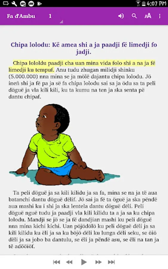 This application has information on childhood diarrhea in Fa d'Ambu of Equatorial Guinea, with audio.