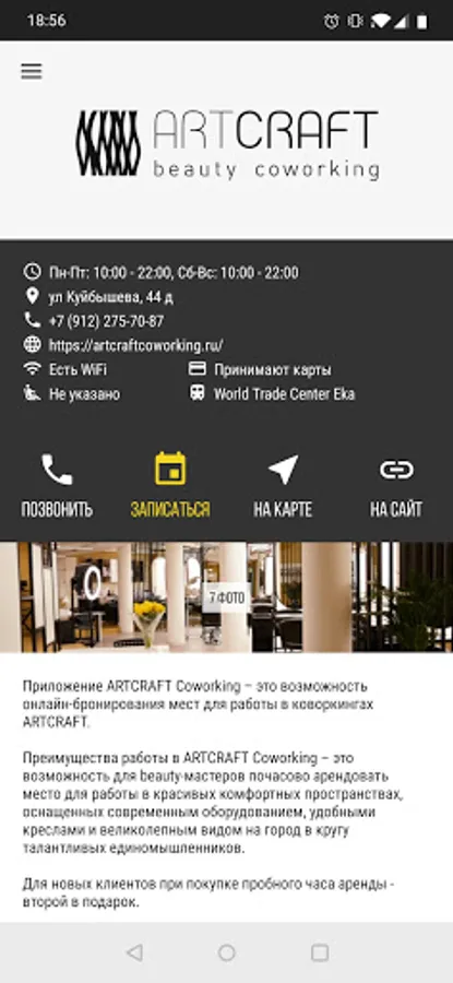 The ARTCRAFT Coworking app is an online booking option for work in ARTCRAFT coworking spaces.
