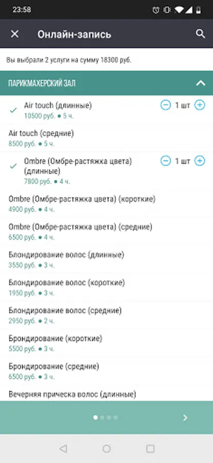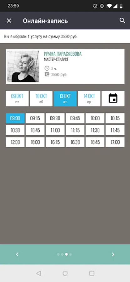 Mobile applications of the "Parfe studio" beauty workshop, Moscow.