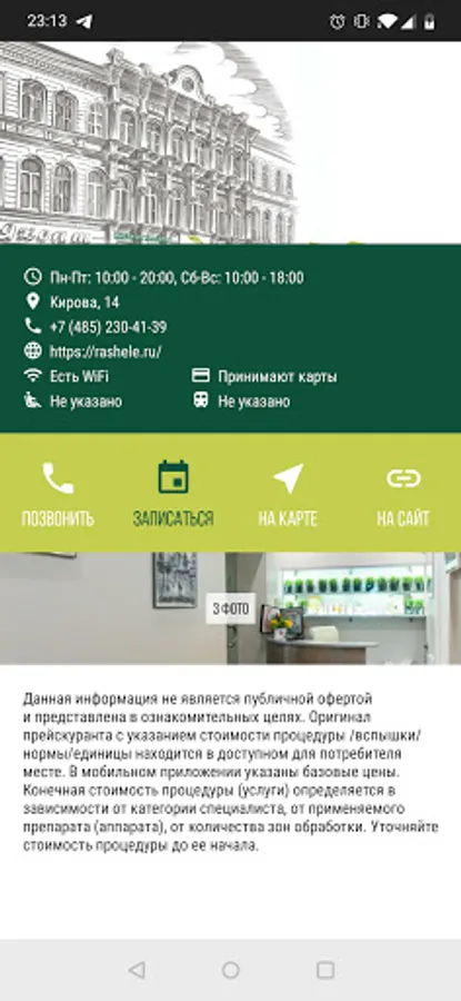 And the most important thing is that now you don't have to look for the phone number of the salon, in case you urgently need to transfer a record or to clarify something, and in just two clicks through the application you can easily contact the administrator.