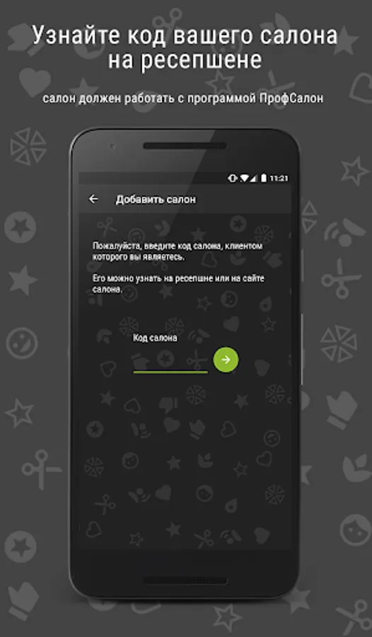 salon code must be entered only once, the app remembers your choice.