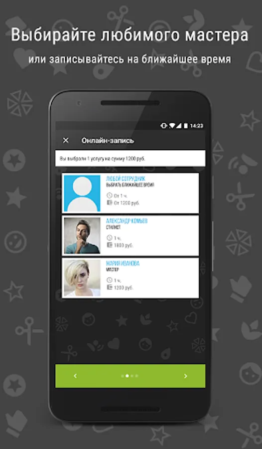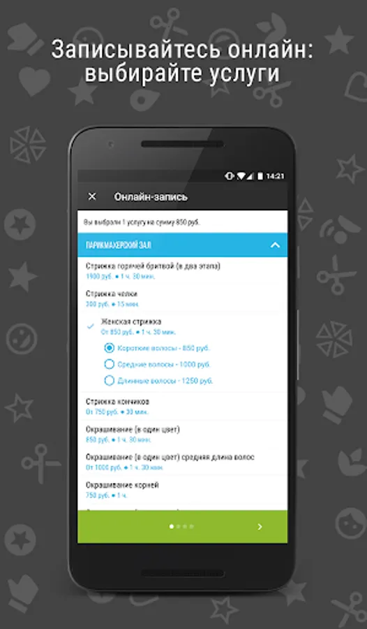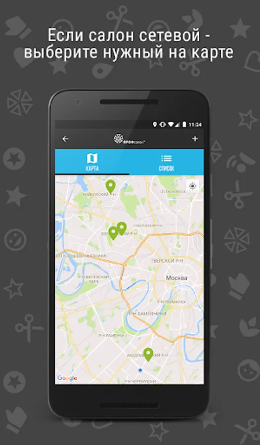 • Call the salon with one click, open interior location on the map