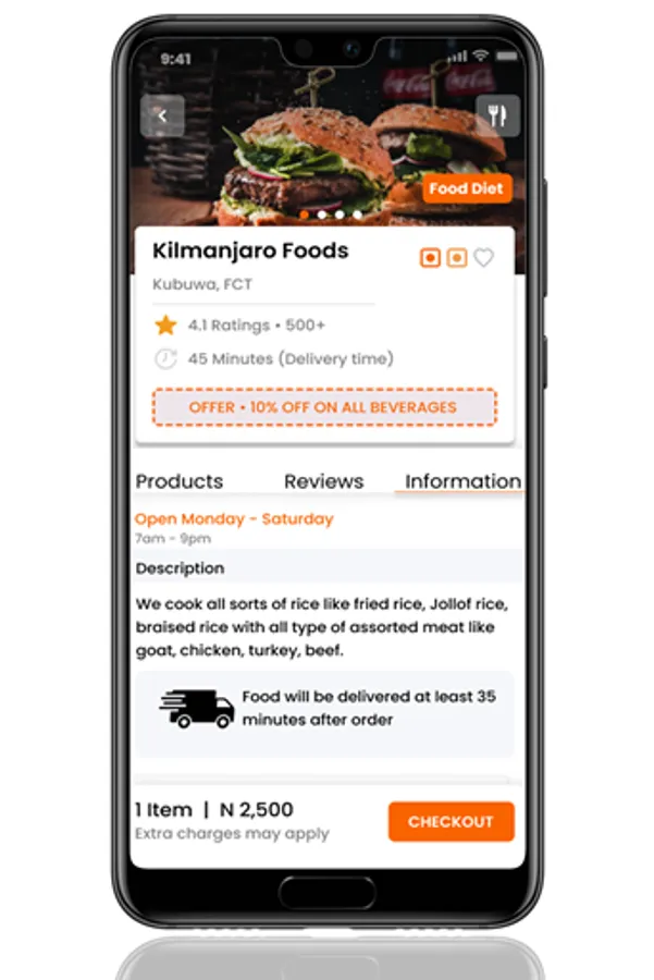 Browse a multitude of restaurant menus and order from countless restaurants. With our filters and smart search functions, you can find the exact menu you want in no time, available to personalize at your request. Order your favourite food and get it delivered to wherever you are within our delivery location in Abuja