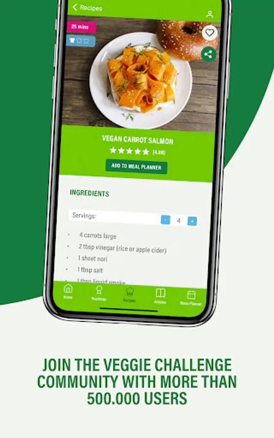 Receive daily tips, rewards, hundreds of recipes, free coaching, and access to a vibrant and supportive community. The app provides daily challenges, helps you make weekly meal plans, calculates your impact, stores your favorite recipes, and brings cooking instructions straight to your kitchen. 100% free.