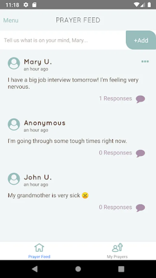 The youth ministry of Peachtree Road United Methodist Church can post prayer requests and respond and pray for others.