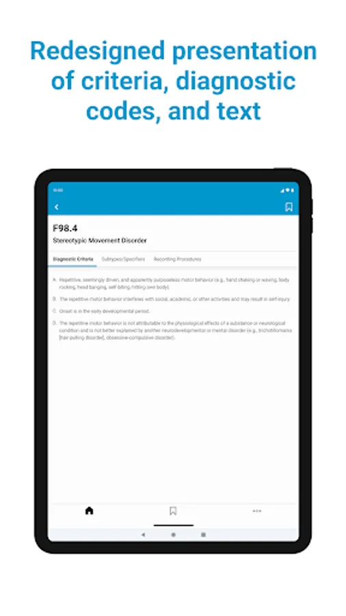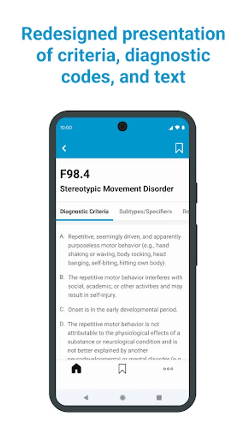 The DSM-5-TR® Diagnostic Criteria Mobile App has been fully redesigned and is a concise companion to the ultimate psychiatric reference, Diagnostic and Statistical Manual of Mental Disorders, Fifth Edition, Text Revision (DSM-5-TR®). It includes the fully revised diagnostic classification, as well as all the diagnostic criteria from DSM-5-TR® in an easy-to-use format. This handy reference provides mental health practitioners, researchers, and students quick access to the information essential to making a