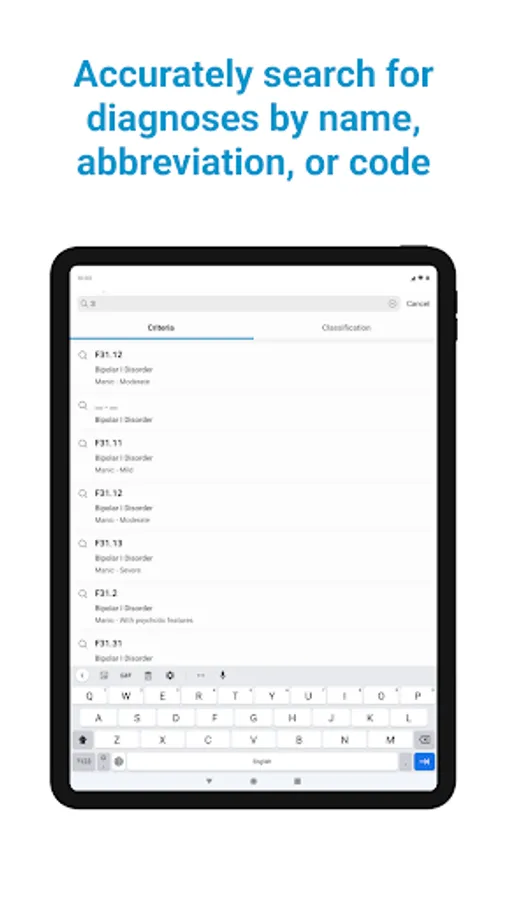 - Enhanced search with powerful disorder, acronym, code, and symptom search functionality