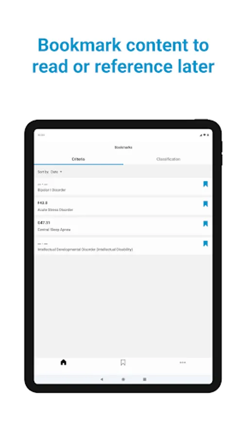 - Dual-use modes for toggling between the diagnostic criteria and classification