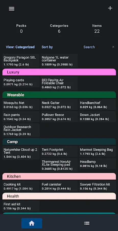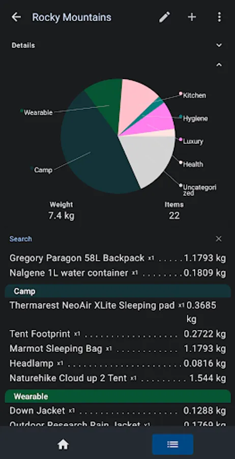 Organizational tool that lets you catalog your backpacking gear. Discover useful insights about your gear.